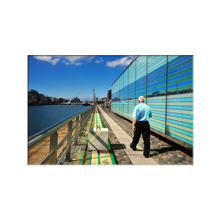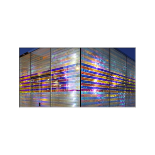 Chameleon Dichroic Film can be perforated and can be combined with plain or patterned glass.  The film can be incorporated into sealed units, laminated between two sheets of glass or applied to the inner facing in single glazed applications.